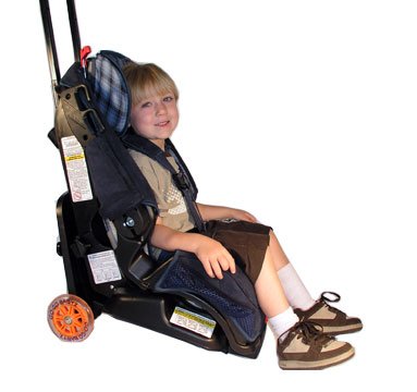 Product Description Turn your car seat into a stroller and make your travels a breeze! The Universal Travelmate is a handled, wheeled attachment that is designed to work with most toddler car seats. It is light-weight and easily removable by simply turning a few knobs. Most parents areaware that the FAA strongly recommends that all children under 40 lbs travel by plane in an FAA approved car seat. This presents a dilemma - how do you move the car seat and the various items of carry-on luggage through the airport and have a free hand to assist and tend to your child with?! Instead of carrying your car seat and child through the airport, you can wheel them. The gogo Kidz significantly lightens the load of parents on the go with toddlers and all their gear! It takes just seconds to attach and then your car seat and your child are ready to roll - right through the airport and down the jetway! In larger aircraft the Go Go Kidz Universal will actually roll right down the aisle of the plane to your seat. When you arrive at your seat simply place your child's car seat with the Travelmate still attached and buckle them in (a hint to make your life easier: ask the flight attendant for a Seatbelt Extender). The Go-Go Kidz Universal Travelmate truly simplifies traveling with toddlers!Works with Britax - Roundabout, Marathon, Decathlon, Boulevard, and Wizard; Cosco - Alpha Omega Elite, Summit High Back, High Back Booster;Eddie Bauer - Summit Booster; Evenflo - Titan Deluxe, Tribute VLX, Generations Booster, Harness Booster, Tribute 5 Deluxe, Chase LX; Fisher Price - SafeVoyage; Graco - Toddler Safe Seat, Comfort Sport, Treasured CarGo; Recaro -Young Sport; Safety 1st - 3-Phase, Enspira. NOTE: If you have an Evenflow Triumph or another car seat not listed please contact us at 801-864-4827. 0