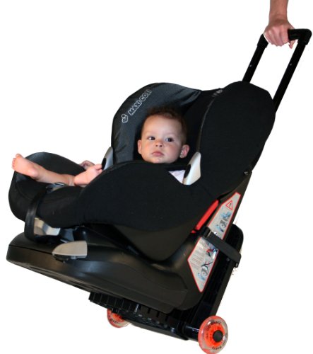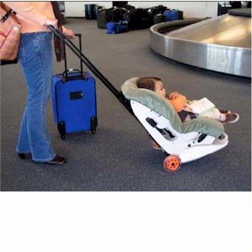 The Go-Go Kidz TravelMate is compatible with a variety of convertible/toddler car seats. View larger. | How It Works The Go-Go Kidz TravelMate quickly and easily attaches to most convertible or toddler car seats. It has 5-inch wheels and a telescopic handle for easily wheeling your child in his or her car seat. Since the FAA strongly recommends that children under 40 pounds use a car seat for air travel, the TravelMate saves you the hassle of hauling your car seat -- and your active toddler, plus all your gear -- through the airport. The TravelMate's wheels detach easily for passing through airport security X-ray machines. The handle features four-posi |