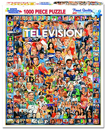 -. Binding : Toy -. Brand : White Mountain Puzzles -. Color : Television History -. EAN : 0724819248940 -. Feature : This jigsaw features a colorful collage of more than 250 TV stars and unforgettable moments in American television. / James Mellett is a Pittsburgh native and has been a freelance illustrator for almost 20 years working out of his home studio. / Every White Mountain Puzzle is proudly manufactured in America with a 100% customer satisfaction guarantee. / All our puzzles contain unique interlocking pieces that are made of sturdy blue chipboard on recycled paper. / 1000 piece puzzles measure 24"x30" - larger pieces for easy handling -. IsAdultProduct : 0 -. IsAutographed : 0 -. IsMemorabilia : 0 -. ItemPartNumber : 270 -. Label : White Mountain Puzzles, Inc. -. LegalDisclaimer : Free two day shipping. Excellent condition. -. Manufacturer : White Mountain Puzzles, Inc. -. Model : 270 -. MPN : 270 -. NumberOfItems : 1 -. PackageQuantity : 1 -. PartNumber : 270 -. ProductGroup : Toy -. ProductTypeName : TOYS_AND_GAMES -. Publisher : White Mountain Puzzles, Inc. -. Studio : White Mountain Puzzles, Inc. -. Title : White Mountain Puzzles Television History - 1000 Piece Jigsaw Puzzle -. UPC : 885590515703