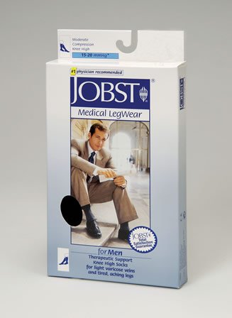 Studio : Jobst Publisher : Jobst Binding : Health and Beauty Product Description 115013 Size: Medium, Color: Khaki Pictured in Black Features: -Sock.-Material: 76pct Nylon, 24pct spandex - latex free.-Fabric: Men's dress, ribbed.-Toe type: Closed toe.-Comfortable, gradient compression hosiery designed for men's needs.-Combines efficacy and fashion.-Attractive ribbed design with 3-D knit structure.-Easy to wear with a comfortable band that keeps socks up without binding.-Flat toes seams and a roomy toe section.-Reinforced heels for a longer lasting, durable product.-Anti-bacterial additive reduces unpleasant sock odor.-Special moisture - transport system with soft micro and multitier yarns in the sole keeps feet dryer.-Condition: Mild swelling, spider veins, tired, aching legs, varicose veins-mild.-Sold as a pair. Options: -Available in several colors.-Available in small, medium, large, large tall and x-large sizes. Dimensions: -Style / Length: Knee high. 0
