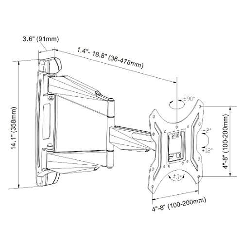 -. Feature : Available VESA Size: 100x100mm 200x100 mm 200x200 mm / Compatible screen size: 26"-42" / Weight capacity: max.55lbs (25kg) / Magnetic bubble level: perfect positioning is guaranteed by removable magnetic bubble level. / Tilt angle: -2~12 degree , Swivel angle: -90~90 degree, Material: stainless steel, Distance to the wall: 1.53~18.8inch
