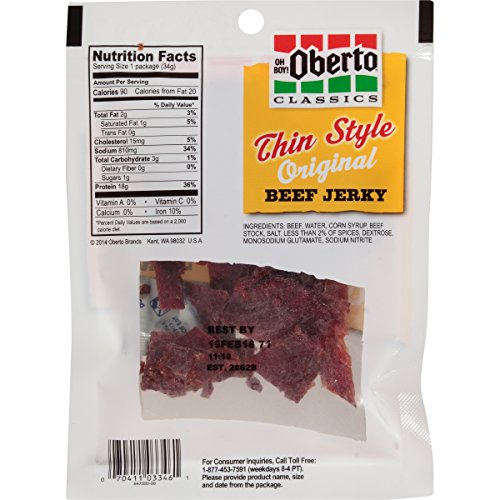 Oh Boy! Oberto Classics Original Thin Style Beef Jerky, 1.2-Ounce Bag (Pack of 8)