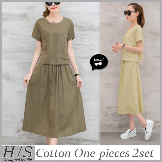 M:(トップス)着丈48cm、バスト88cm、袖丈18cm、肩幅34cm、(スカート)丈77cm