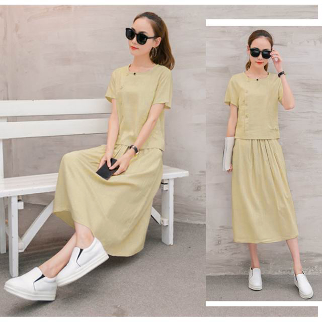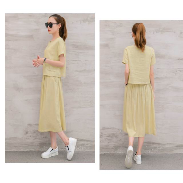 XL:(トップス)着丈50cm、バスト96cm、袖丈20cm、肩幅36cm、(スカート)丈79cm