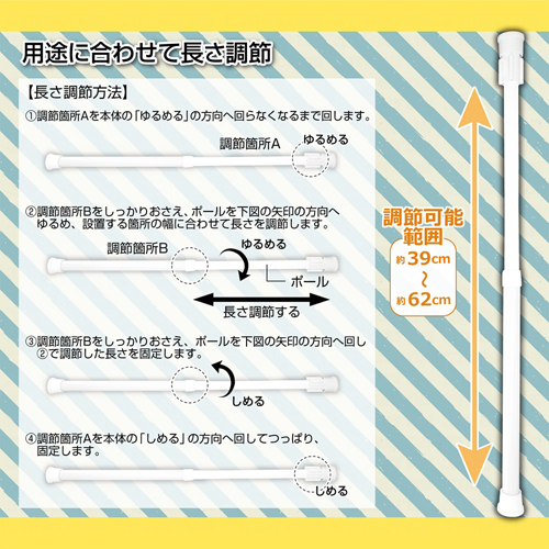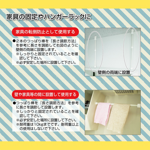 ●2本の棒で天井と家具をしっかり固定 地震の際の家具の転倒防止対策に ハンガーラックとしても使用可能