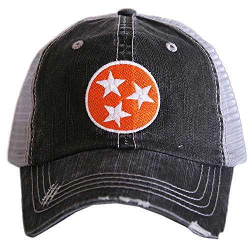 Binding : Apparel Product Description Look stylish with this Katydid Tennessee Tri-Star Women's Trucker Hat - Premium Embroidery, Distressed Style, Adjustable Velcro Tab, Curved Bill, Designed and Embroidered in the USA