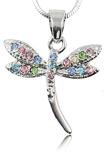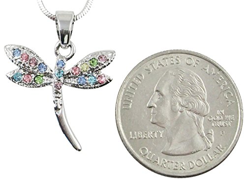 Dragonfly measures 3/4" long x nearly 1" wide Dragonfly is embellished with multicolored crystals Chain is 17" with a lobster clasp Lead and nickel safe/compliant Comes packaged ready for gift-giving Brand : Glamour Girl Gifts Collection
