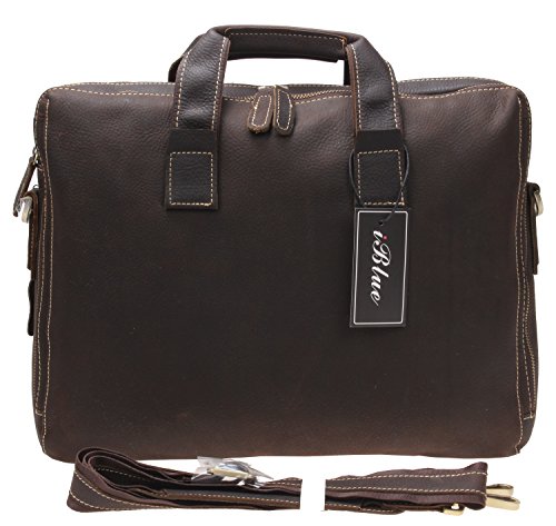 -. Title : Iblue Mens Real Genuine Leather Work Briefcase Business Shoulder Tote Bag 15.5 In #7167