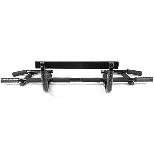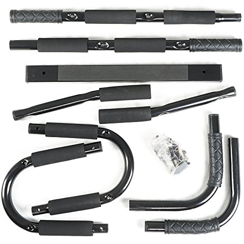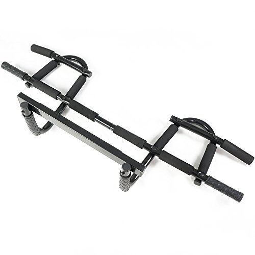Studio : Titan Fitness Publisher : Titan Fitness Binding : Tools Home Improvement Product Description The Titan Fitness Extreme over the door pull-up bar is perfect for doing strength body weight exercises, both on the door and on the floor! With more bars and grips comes greater exercise variety than our standard pull-up bar! For vertical exercises, you can workout your shoulders, biceps, back and tricep muscles with chin-ups, pull-ups, leg-lifts and reverse crunches. When you place it on the floor, you can work out your abs with crunches, your triceps with dips, and your chest with push-ups. The Extreme Titan Fitness pull up bar is easy to assemble, does not require mounting, and is very versatile and affordable! 0
