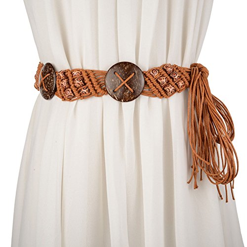 | Women Bohemian Chain Wood Waist Belt With Dress and Sweater Knotted Decorated |