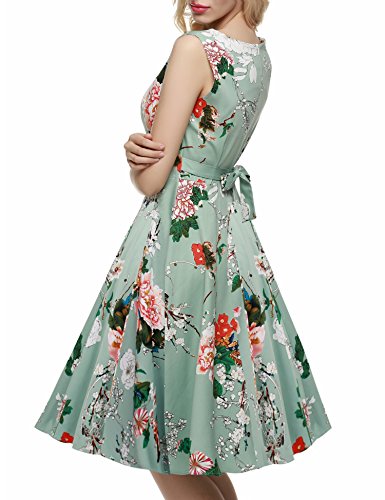 Title : ACEVOG Women's Rockabilly Evening Cocktail Party Floral Print Dress Light Gray XXL