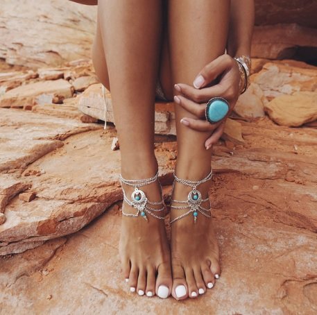 -. Title : ボヘミア アンクレット (21cm+アジャスター5cm)ターコイズ 足元のオシャレ ブレスレット
