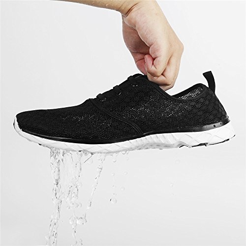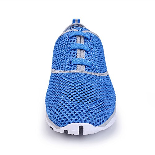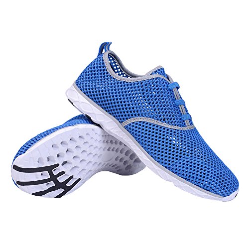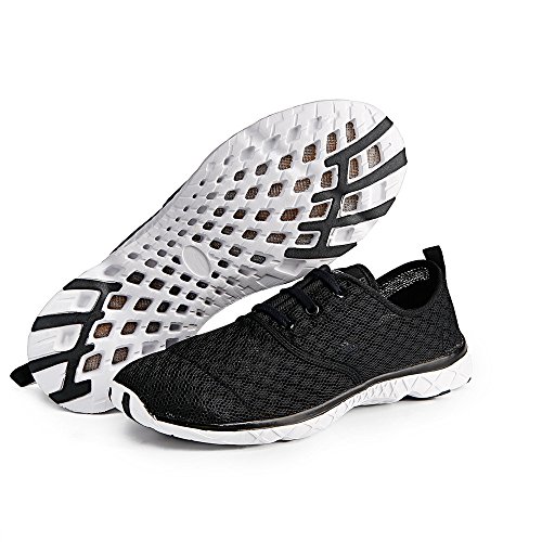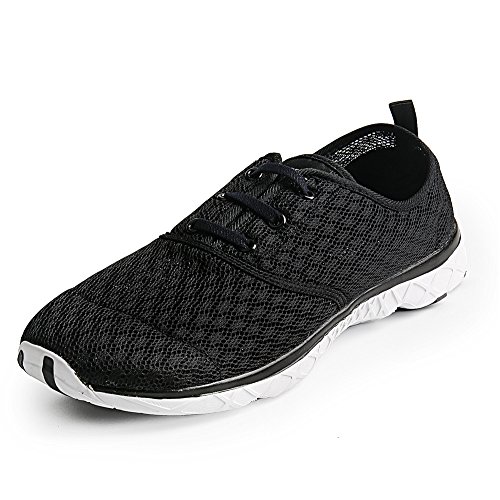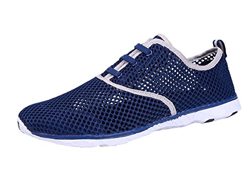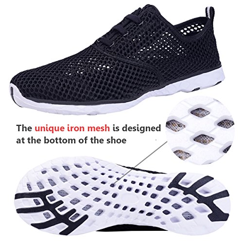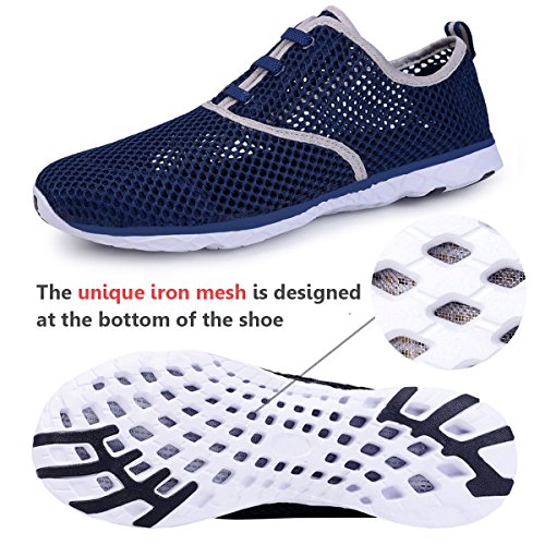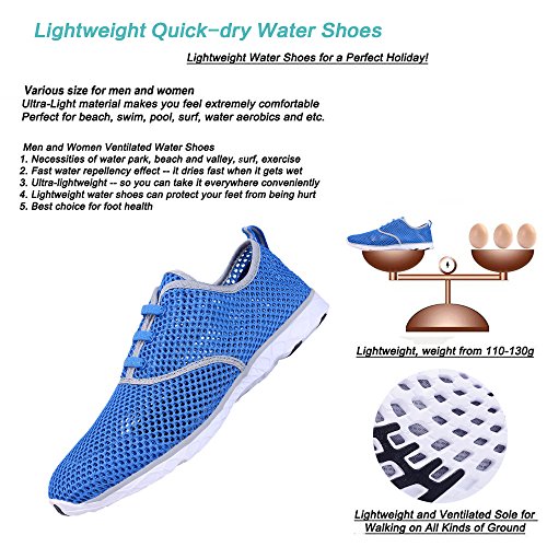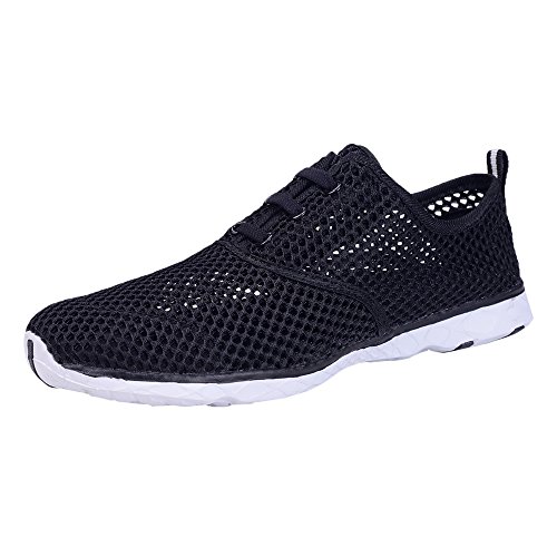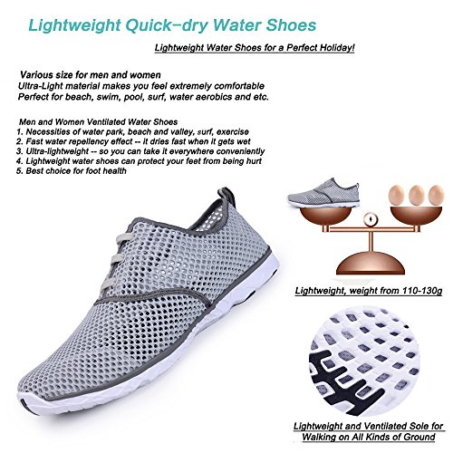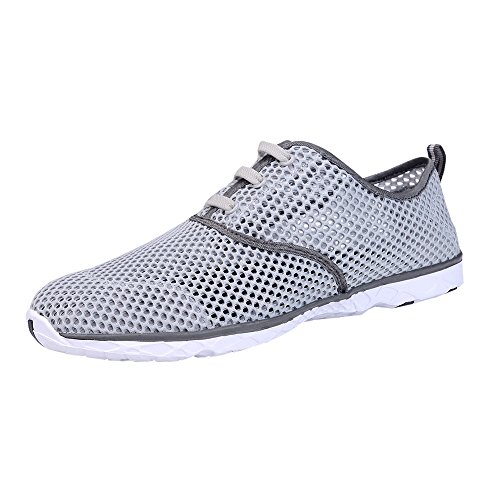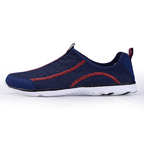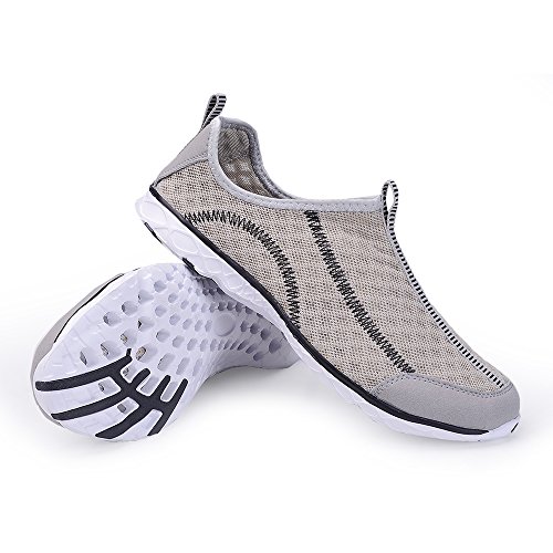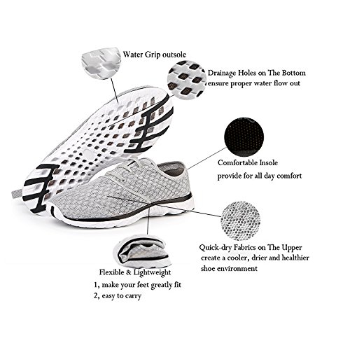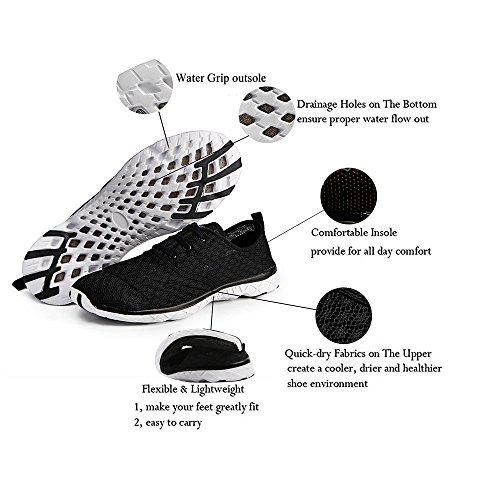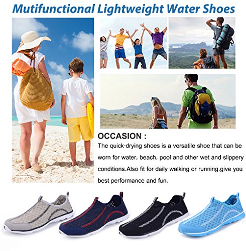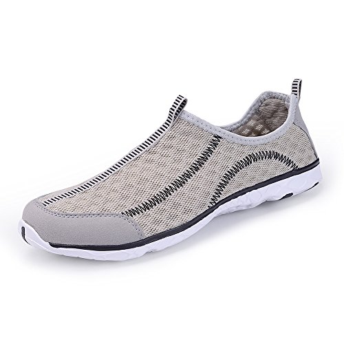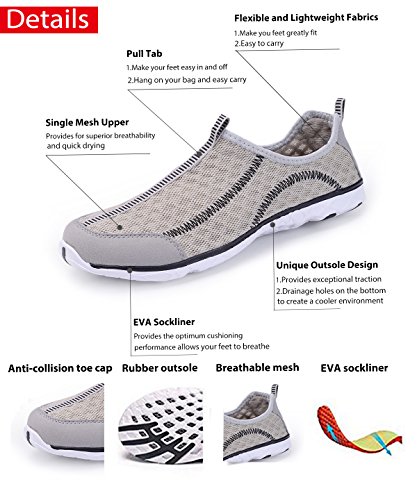 The Men Water Shoe is made with lightweight mesh and a midfoot webbing system that integrates with slip on for lightweight breathability and an adaptive, supportive fit. Soft cushioning and breathable RB/Eva outsole,articulated flex grooves offer plush comfort and natural range of motion.The aqua/mesh slip on shoes can be functional used,for daily or travel walking with barefoot fitting give you exceptional comfort,for river walking or water aerobic sports,give you best performance and fun. Feature: BREATHABLE UPPER: Breathable and single-layer air mesh upper allows; your feet to breathe freely. Open mesh on the upper; provides for superior breathability and quick drying SOLYTE HOLLOW MIDSOLE: Unique sole with lots of drainage holes on each bottom to ensure proper water flow out of them,provides an exceptionally lightweight midsole with excellent bounce-back and durability. WITH EXCELLENT BOUNCE-BACK AND DURABILITY: With an excellent performance in bounce-back and durability articulated flex grooves offer plush comfort and natural range of motion. Multifunction: A multi purpose shoe.you can use the sneakers as a water athletic shoe when you go out.doing some exercises or traveling other country.Packing easily and portable easily because the walking shoes lightweight and Flexing.light weight aquatic shoe. Instead of having to pack two pairs of shoes one for travel and one for swimming you don¡?t need add two shoes tin your luggage. travel light and multi-task with these ""two-in-one"" water/athletic shoe. 0