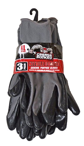 Big Time Products Grease Monkey Nitrile Dip Gloves (Large), (Pack of 3)