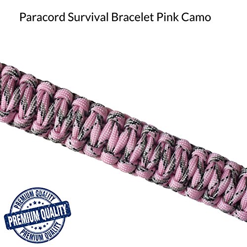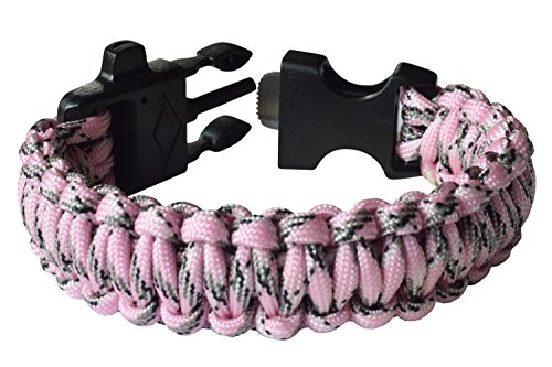 Paracord Survival Bracelet [Camping, Hunting, Fishing], Mertlin Survival Bracelet with Fire Starter, Emergency Whistle and Scraper/Knife, Paracord 550, Basic Survival Gear, Pink Camo, X-Small