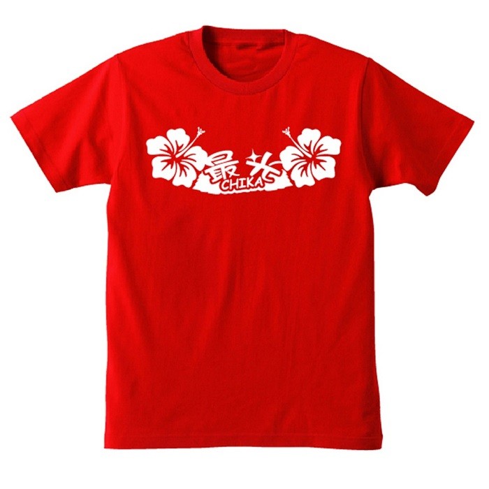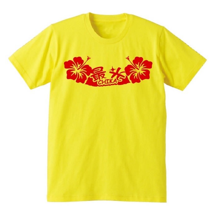 人気スロット機種 チカチカと光るハイビスカスに嵌る人続出中!このTシャツを着て打てばいつもよりハイビスカスが1.5倍くらい光ります(笑)。 ハイビスカス大好きな人にはたまらない面白運気上昇勝負Tシャツ!カラーは赤・黄の2種類より選択可能です。