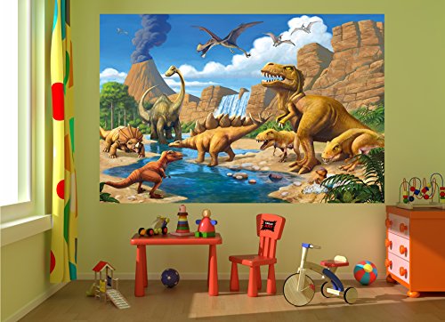 ✅ 82.7 x 55 Inch - 5 Parts ✔ Wall-mural for children's room animal wall decoration for your interior-design with bite ✔ Dinosaur paradise as wallpaper.