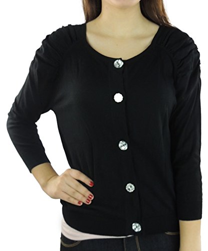 Wanting to make a royal statement? Well, this royal blue cardigan top is perfect for you. With these quarter sleeves and rhinestone buttons it is sure to make you feel and look like royalty whether you are at the office or out with friends.Feature
