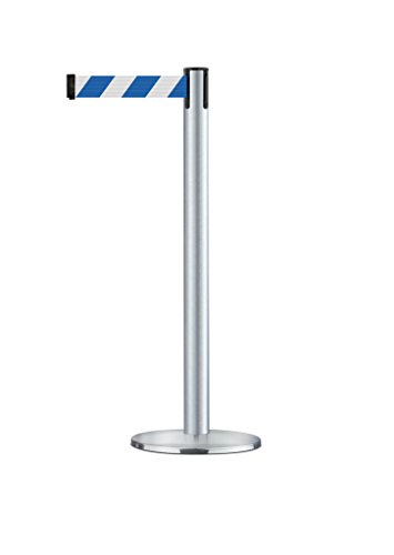 Tensabarrier 889U-1S-1S-MAX-NO-D1X-C - Satin Chrome Post, 2" Wide, 13' Length Chevron Blue & White Belt , 38" Height, 2.5" Wide, 156" Length