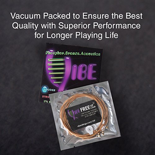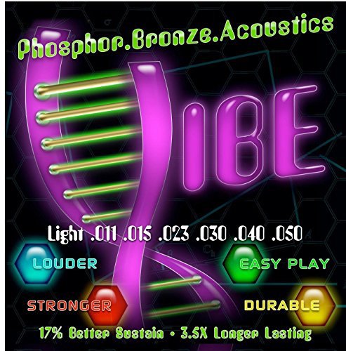 Vibe Strings Acoustic Guitar Strings, Phosphor Bronze/Steel Light Gauge 11-50, Vacuum Sealed - Comfortable Play, Lasting Sustain with Bright Clear Tone