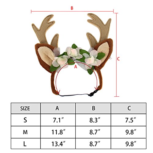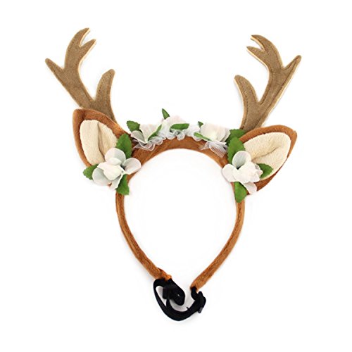 -. Binding : Misc. -. Brand : ShangjingMeixie -. Feature : Lightweight headband with adjustable elastic band, 10-19 inches / Elastic chin strap to help keep on your dog / There have tiny wire inside Reindeer Antlers so that it could be shaped and will not deform / Leave and white flower detail makes it adorable and special / Adding strong atmosphere to Festivals,Halloween and Christmas etc with this cute Reindeer Antlers Headband -. Label : ShangjingMeixie -. Manufacturer : ShangjingMeixie -. PackageQuantity : 1 -. ProductGroup : Pet Products -. ProductTypeName : PET_SUPPLIES -. Publisher : ShangjingMeixie -. Studio : ShangjingMeixie -. Title : Dog Headband Costume Christmas Antlers for Dogs Cats Party Headbands