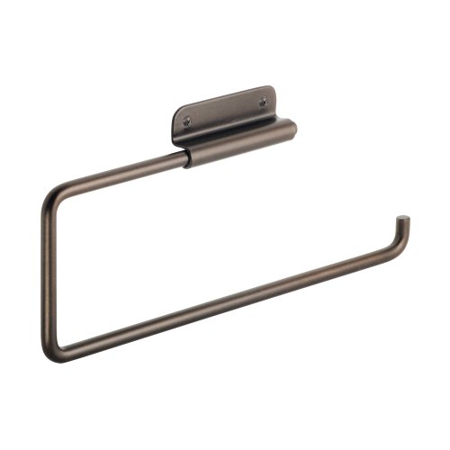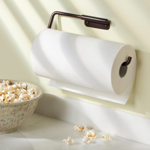 Product Description Place a convenient paper towel holder on walls or under cabinets with this simple design and easy to mount package. Swivel hinge accommodates any size roll, and steel construction is sturdy and lasting. Powder coated bronze finish complements any decor. Includes all necessary mounting hardware. 0