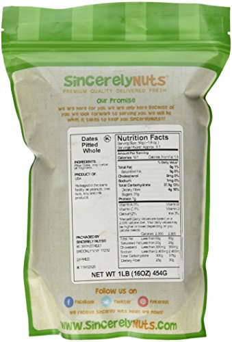 Sincerely Nuts Whole Pitted Dates- One Lb. Bag - Packed with Fiber & Minerals - Irresistibly Scrumptious - Guaranteed Freshness - Kosher Certified