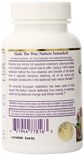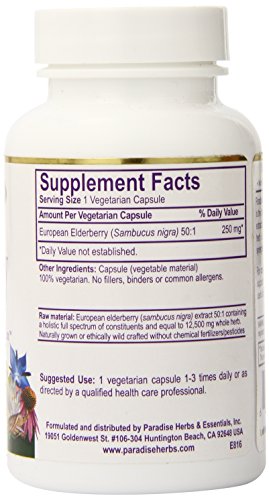 Paradise Herbs 50:1 250 Mg Vegetarian Capsules, Elderberry, 60 Count