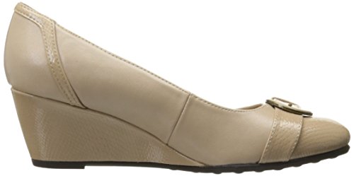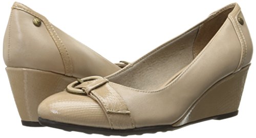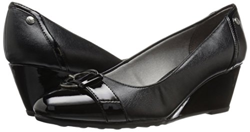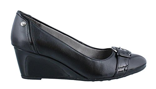 Product DescriptionDress wedge with buckle and faux patent toe0