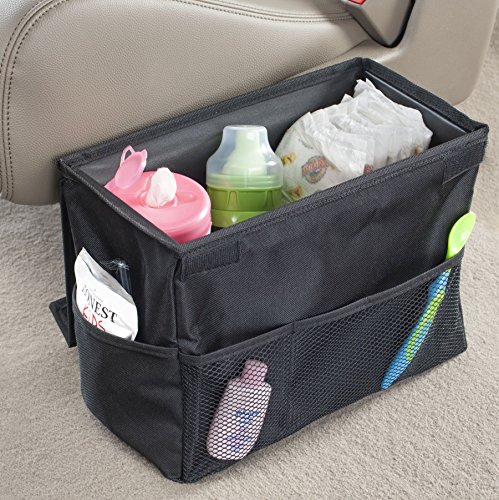 Better than a built-in console, the portable CarganizerTM has a covered compartment big enough to hold tablets and notebooks, and four outside pockets to quickly access phones, sunglasses, sanitizer and snacks