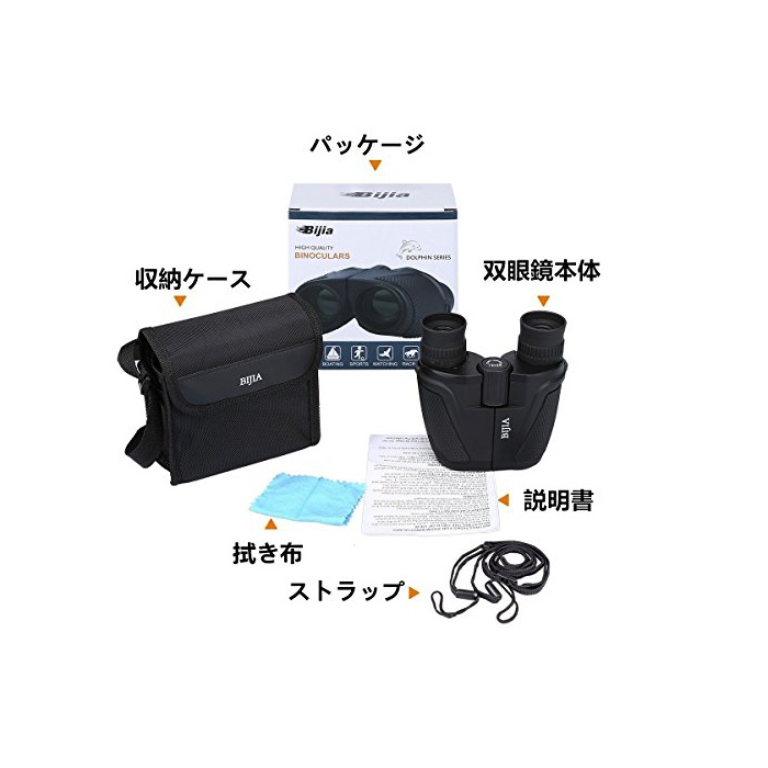 Bijia 쌍안경 12x25 소형 경량 폴로 프리즘식 오페라글라스 스트랩부 수납 케이스 12배 25구경 25mm