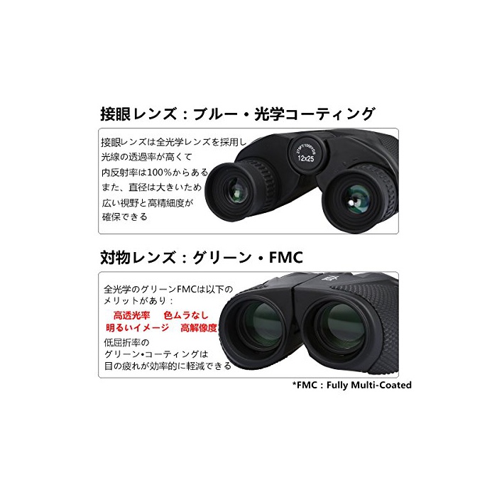 ◆【콤팩트】:손바닥 사이즈:L110 x W80 x H40 mm,경량:400g,고배율:12배,최단합 초거리:5m,대물 렌즈 유효경:25mm,방수성:ip4방수,포커스식:중앙 포커스+오른쪽 눈 포커스,종류:폴로 프리즘,컬러:블랙,적용 경우:스포츠 관전/수렵/천체 관측/버드워칭/라이브/연주회…