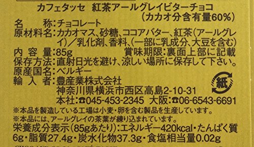 原材料:カカオマス、砂糖、ココアバター、紅茶(アールグレイ)/乳化剤、香料、(一部に乳成分、大豆を含む)