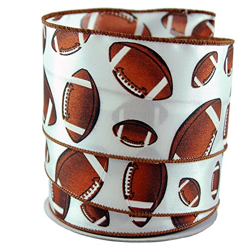 Football Print Brown and White Satin Wired Ribbon #40 - 2.5in x 10 yards