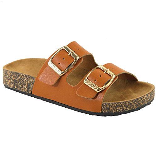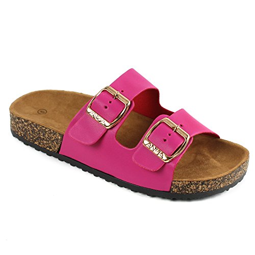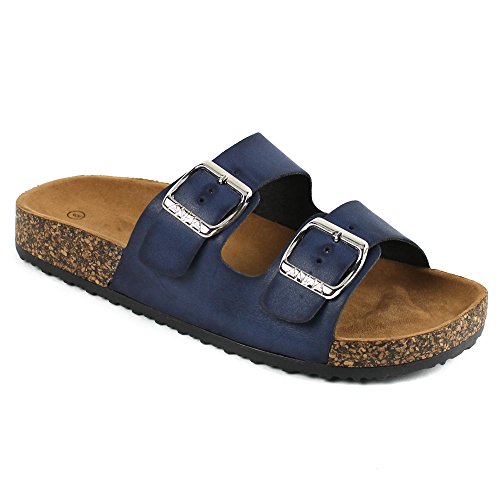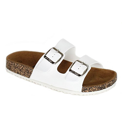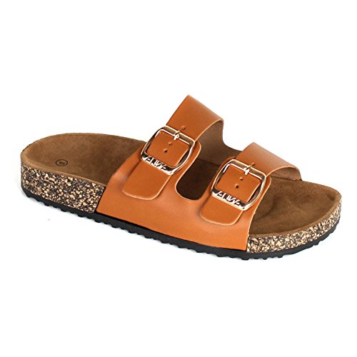 Binding : Apparel Product Description Make the most of warm summer breezes and cool summer nights in the cool and comfy Birkenstock inspired slide sandal! Easy slide sandal offers adjustable buckles at straps. Synthetic leather upper/patent upper features adjustable straps for a durable exterior and custom fit. Breathable leather lining. Cupped suede-covered insole forms to the foot with good arch support. Lightweight cork platform sits atop a durable rubber outsole. 0