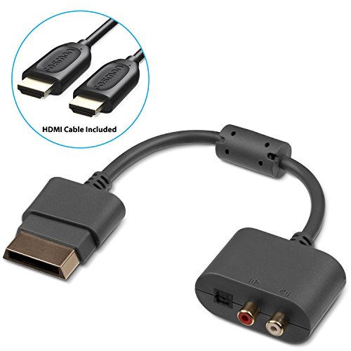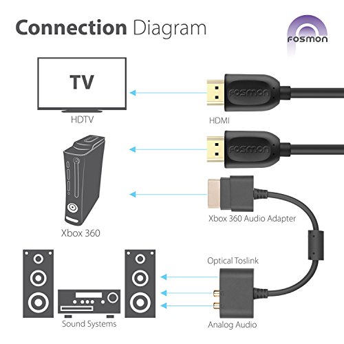 Fosmon HDMI Cable + Audio Dongle Adapter for Microsoft Xbox 360 (Allows HDMI Video & RCA Stereo or Toslink Optical Audio Output)
