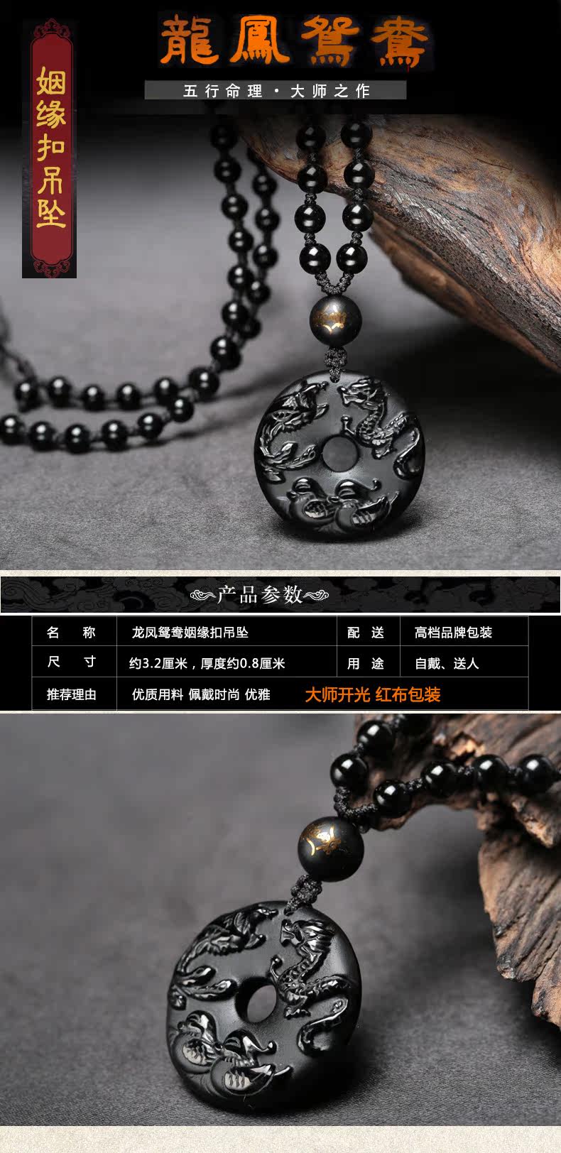 开光 龙凤鸳鸯姻缘扣吊坠 黑曜石酉奇辰元2017年旺姻缘吉祥物饰品