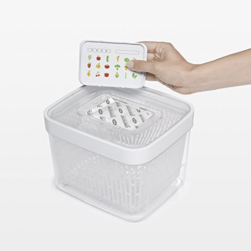 Safe, non-toxic, activated carbon filter absorbs the ethylene gas, slowing down the aging process and keeping produce fresh longer