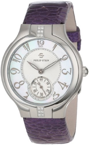 Philip Stein Women's 41SD-FMOP-OLPRM Round Sport Diamond Mother-Of-Pearl Light Purple Ostrich Strap Watch