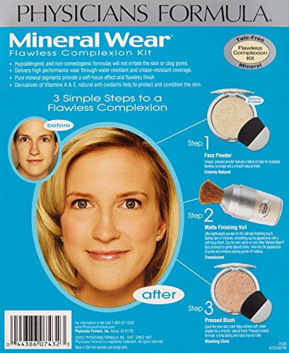 -. Title : Physicians Formula Mineral Wear Flawless Complexion Kit, Light - Pressed Powder: 0.3 Ounce, Matte Finishing Veil: 0.58 Ounce & Pressed Blush: 0.19 Ounce
