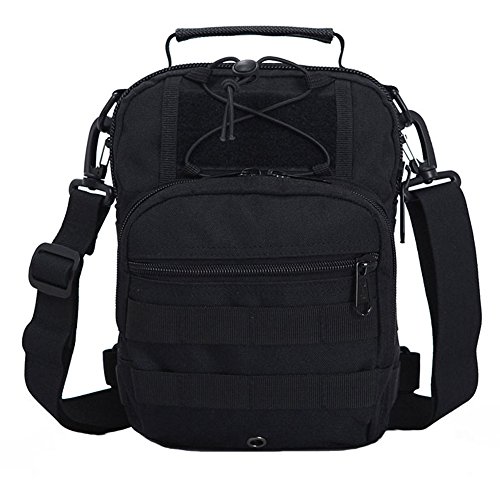 -. Feature : 1. Material: 1000D nylon fabric, durable and anti-scrape. / 2. Size: approx. 8.2"(L) x 4.7"(W) x 11"(H); Weight: 1.2lb. / 3. Handy, versatile 3 ways carrying style: chest bag, handbag, sling bag, more diverse. / 4. Great for indoor and outdoor uses including camping, hiking, hunting, sports events, school supplies, tools, etc. / 5. Multiple zippered pockets to keep your stuff organized.