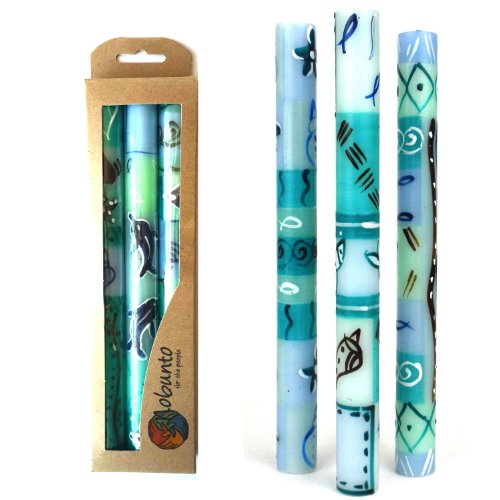 Set of Three Boxed Tall Hand-Painted Candles - Samaki Design - Nobunto Candles