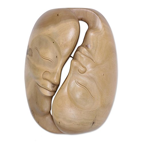 NOVICA Decorative Modern Hibiscus Wood Mask, Ivory, 'Love Circle'