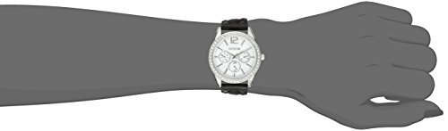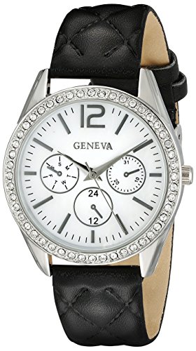 Geneva Women's FMDJM106 Silver-Tone Watch with Black Faux Leather Band