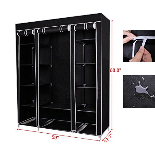 Closet Portable Wardrobe,59" Non-Woven Fabric Cloth Storage Organizer with 12 Shelves,Black