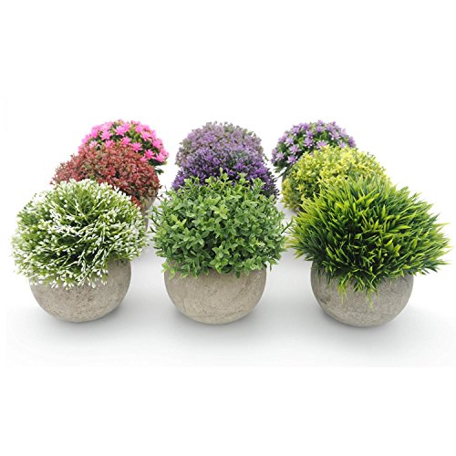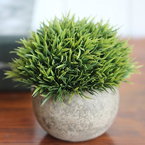 Artificial Plant,Mini Plastic Artificial Pine Ball Topiary Plant with Pots for Home Decor (Green Grass)