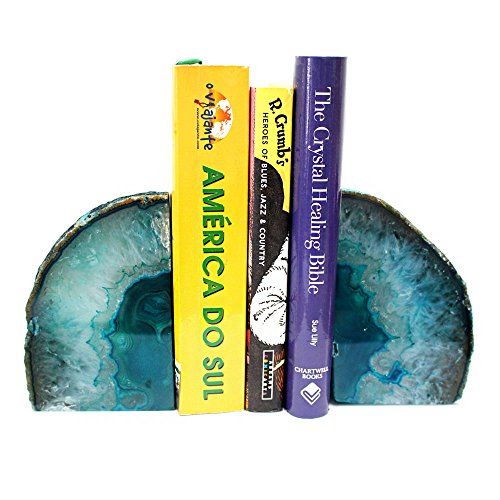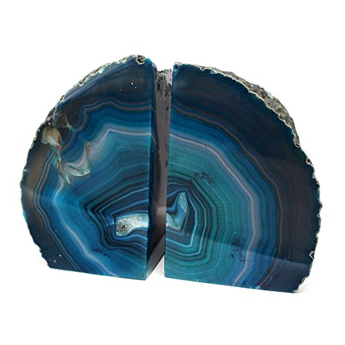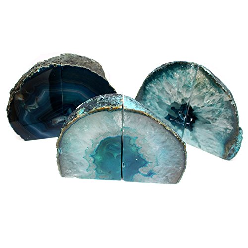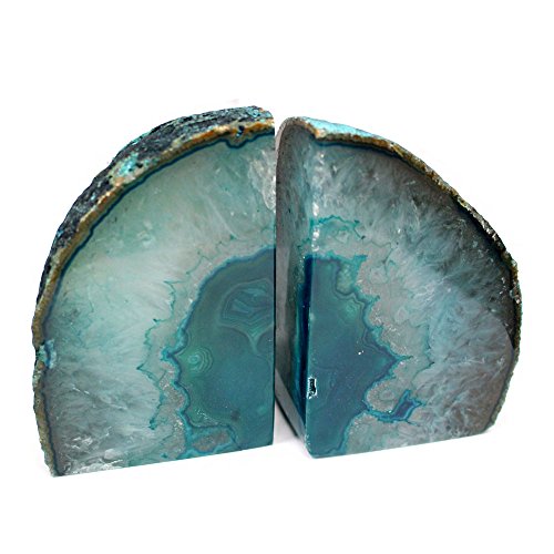 Teal Agate Bookend Pair - 3 to 6 lb - Geode Bookend with Rock Paradise Exclusive COA