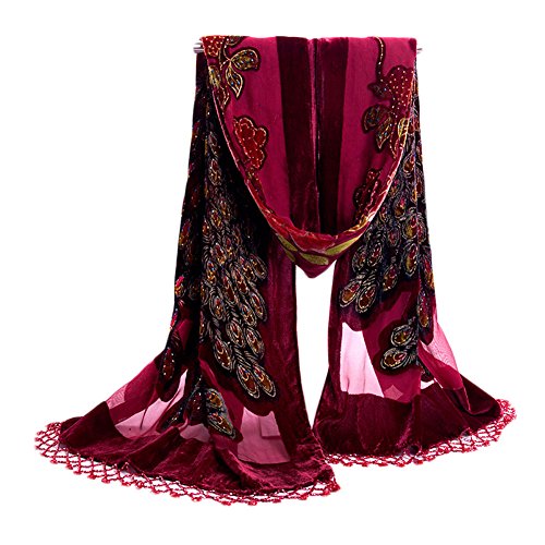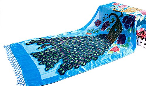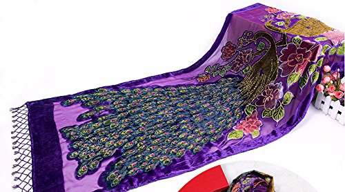 -. Title : COCONEEN Peacock Embroidered Beads Long Scarf Shawls