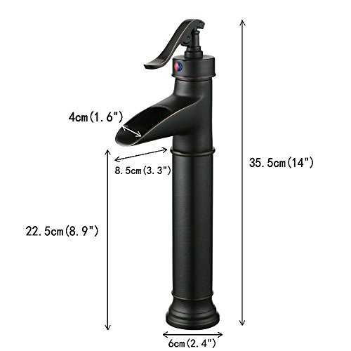 -. Feature : Durable Oil Rubbed Bronze Finish: resists tarnish and corrosion from daily use and provides a lightly brushed warm grey metallic look / Solid Brass construction : Ensuring quality and longevity / Ceramic disc valves exceed industry longevity standards,ensuring durable performance for life.High performance aerator / Commercial Widespread waterfall Spout Modern Bathroom Vessel Sink Faucet,Come with Free fitting hoses(Standard 3/8 inch) and accessories / Single Handle control provides ease of operation with one hand, Onle Hole easy installation basin mixer taps