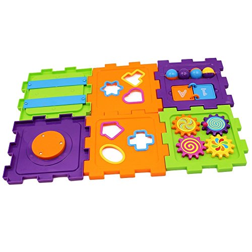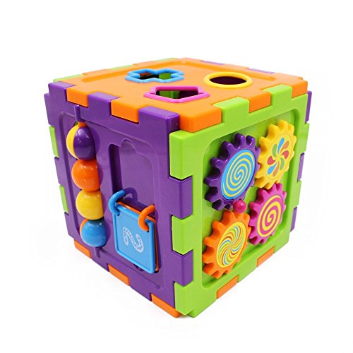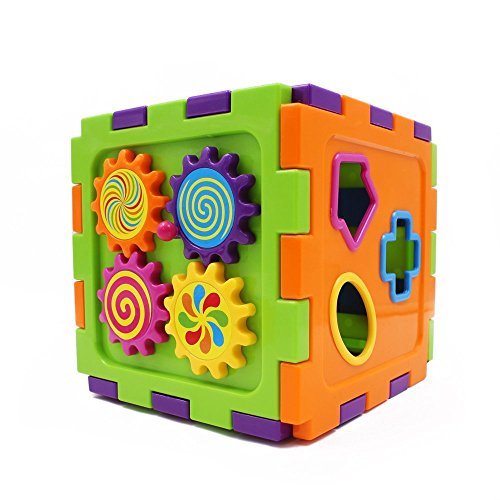 [Reasonable Design]Colorful images, different shapes, clock, beads design. All of these attract kids attention and leads them want to play the shape cube block. This shape and blocks improve kids' ability of colors, shapes identify and stimulate kids' hands cooperation.